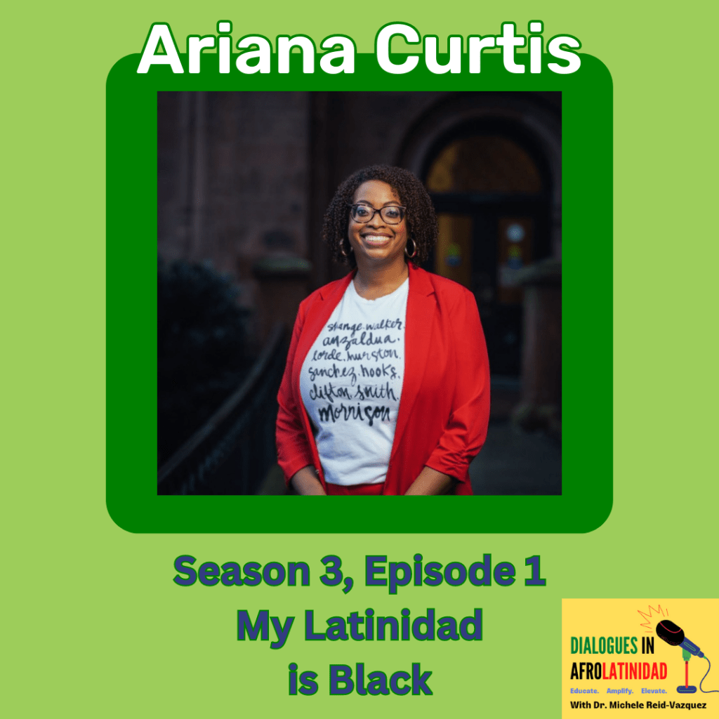 Season 3, Episode 1 – July 19, 2023: Dr. Ariana Curtis shares her African American and Panamanian roots, the centrality of Blackness to Latinidad, and how her personal journey evolved into her professional life as the Curator of Latinx Studies at the Smithsonian National Museum of African American History and Culture.