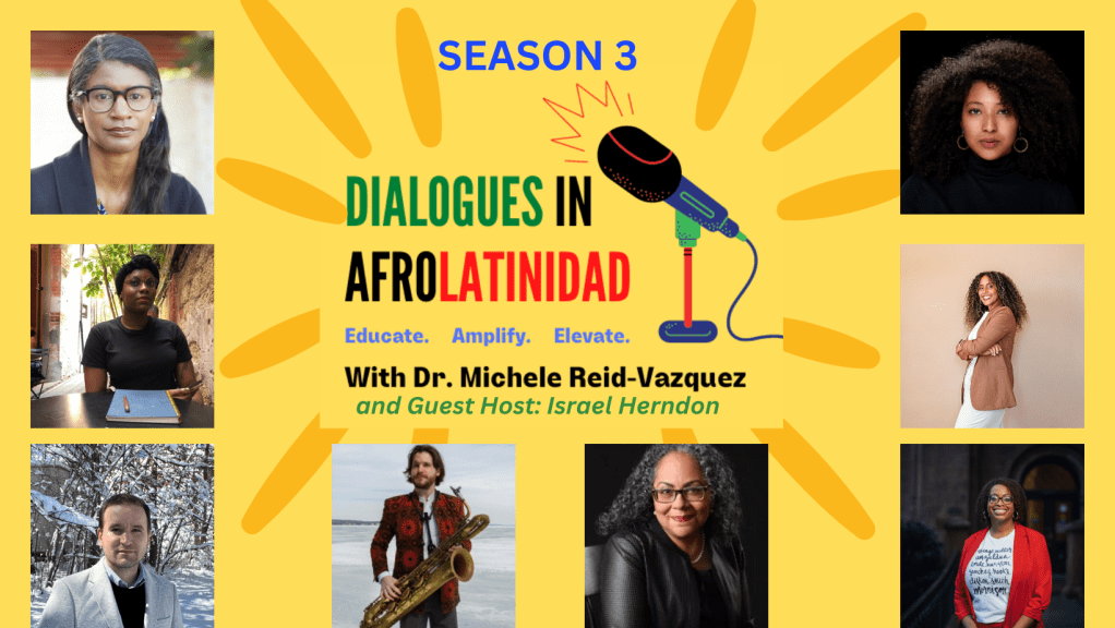 Welcome back!! Listen to the trailer and catch episodes of Season 3 of the Dialogues in Afrolatinidad podcast. Join our host, Dr. Michele Reid-Vazquez, and our guest host, Israel Herndon, to hear from the scholars, artists, educators, and community leaders who are shaping understandings of Afro-Latin American and Afro-Latinx identity.
